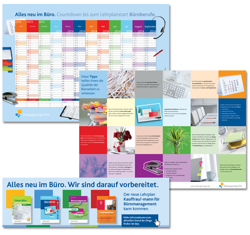 - Jahresplaner, Poster und Web-Banner für Büro-Kampagne